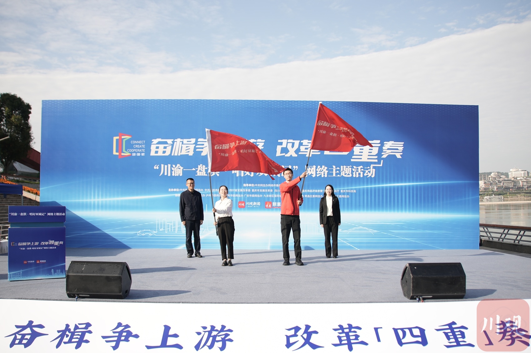 10月28日,“奮楫爭上游·改革‘四重’奏——‘川渝一盤棋·唱好雙城記’”網(wǎng)絡(luò)主題活動(dòng)在宜賓市敘州區(qū)長江公園水幕廣場啟動(dòng)。