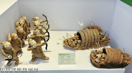 “這個泥塑很有意思,它借用了三國文化里的‘草船借箭’,工藝非常逼真,”南充市民何昌晏老人與記者分享著他對綿陽殘疾人作品的印象,“還有一組寫有‘綿陽人民歡迎您’字樣的人形泥塑,造型非常不錯。”