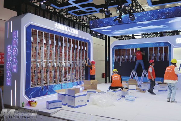 工人在九洲集團(tuán)展區(qū)加緊布展