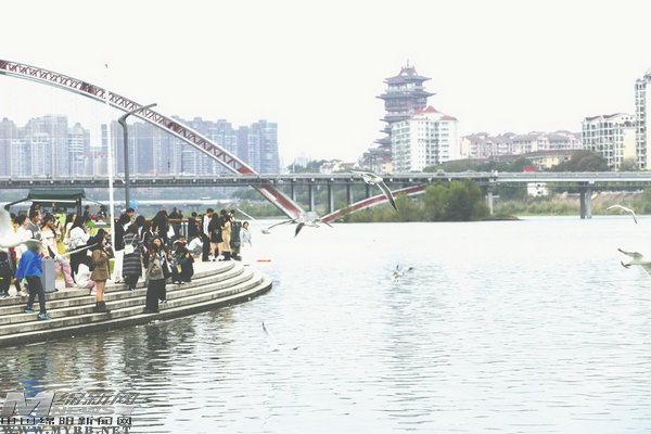11月2日,大量紅嘴鷗在綿陽三江湖碼頭盤旋,與市民親密互動,時而展翅高飛,時而低空掠過人群,時而翩翩起舞,吸引了眾多游客駐足觀看和拍照。紅嘴鷗的到來為綿陽增添了生機與活力,人鳥和諧共處構成一道亮麗的風景線。