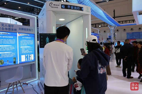 在A館入口,記者挎著包、手拿相機(jī)穿過新一代太赫茲安檢門,不到3秒,屏幕上出現(xiàn)紅色圓圈,標(biāo)注出記者隨身攜帶電子設(shè)備的位置,引起現(xiàn)場觀眾驚呼。中國工程物理研究院電子工程研究所相關(guān)負(fù)責(zé)人介紹,“這臺(tái)機(jī)器集太赫茲技術(shù)和三維全息成像于一體,能實(shí)現(xiàn)對人體表面及衣物之間隱匿的金屬與非金屬違禁品的無接觸式檢查,大幅提升機(jī)場、車站等公共場所安檢效率。”