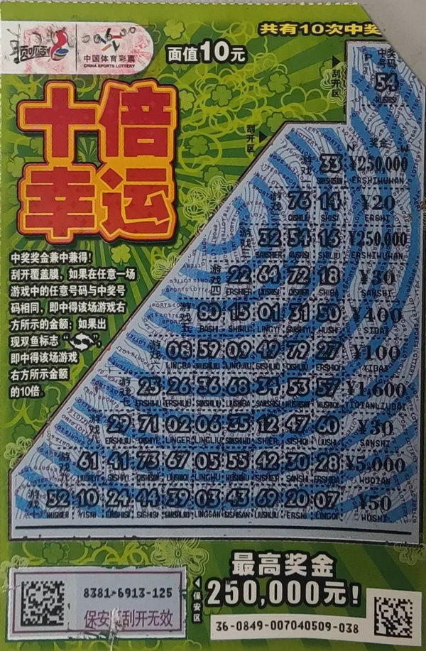 購彩者李先生,在雙十一中出頂呱刮“十倍幸運”頭獎。作為體彩的忠實擁躉,李先生在閑暇時刻喜歡光顧體彩店,尤其對即開型彩票有著不可言喻的喜愛。在眾多選擇中,“十倍幸運”以其獨特的魅力吸引了他的注意,于是他決定一試身手,未曾想這一試竟迎來了一份巨大驚喜。據(jù)李先生介紹,彩票是11日當天刮中的,他已經連續(xù)很多年購買即開彩票,并中過不少小獎項。他自己是體彩的忠實粉絲,閑暇之余,隔三差五就會到體彩店買彩票,各種游戲都有涉足,偏愛即開型彩票。李先生表示,自己沒有固定喜好的品種,就是看好哪個買哪個。