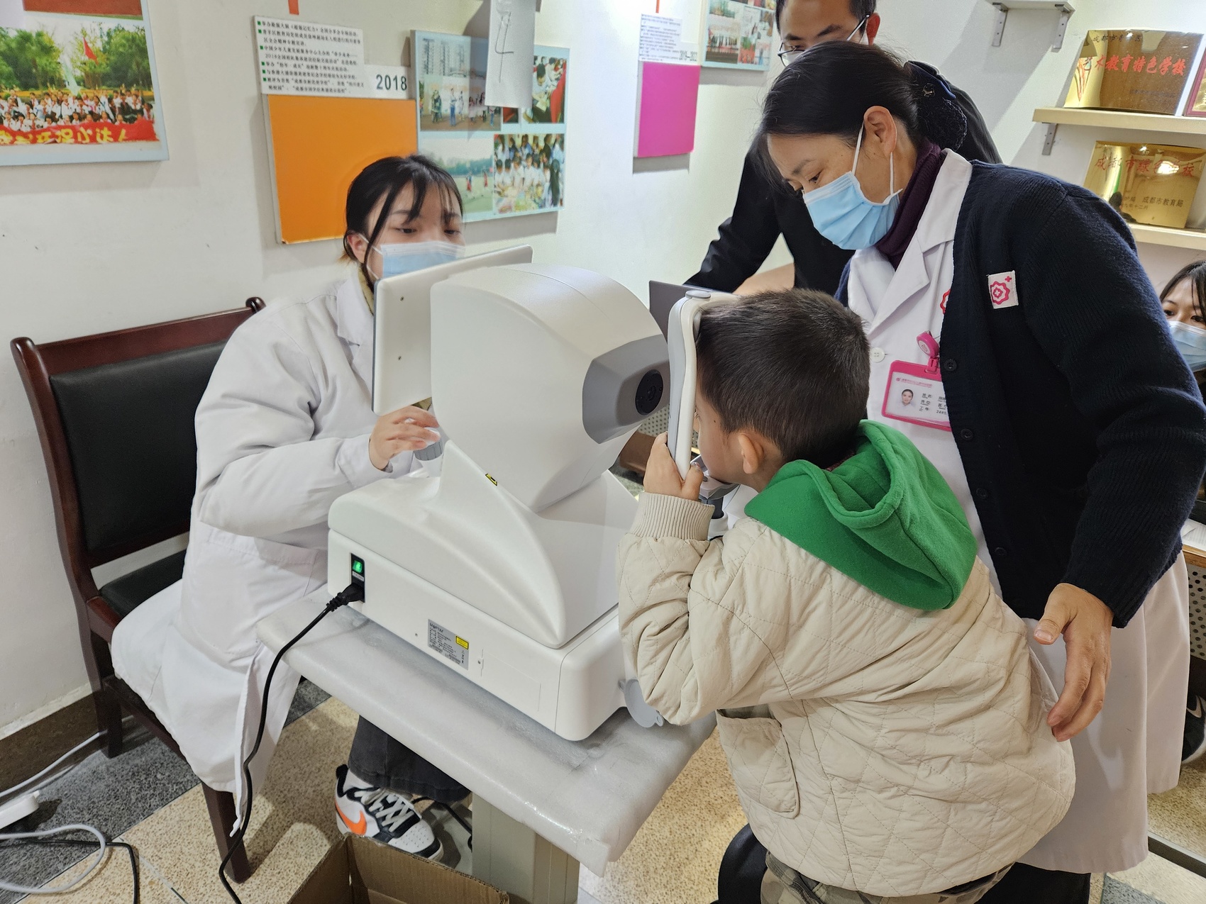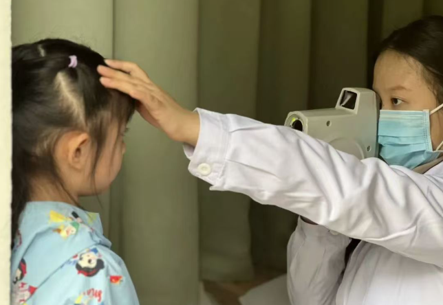 成都市婦女兒童中心醫(yī)院醫(yī)生為小朋友檢查視力