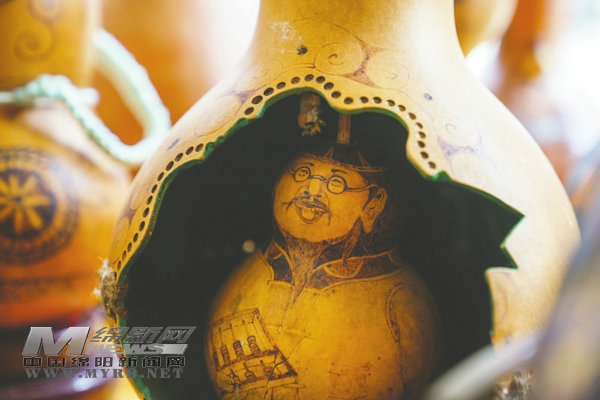 在綿陽(yáng)市安州區(qū)河清鎮(zhèn),有一位被當(dāng)?shù)厝朔Q為“葫蘆哥”的農(nóng)民藝術(shù)家,他以烙鐵為筆,以葫蘆為紙,輕巧勾勒間,精致細(xì)膩的圖案便被烙燙在形態(tài)各異的葫蘆上。