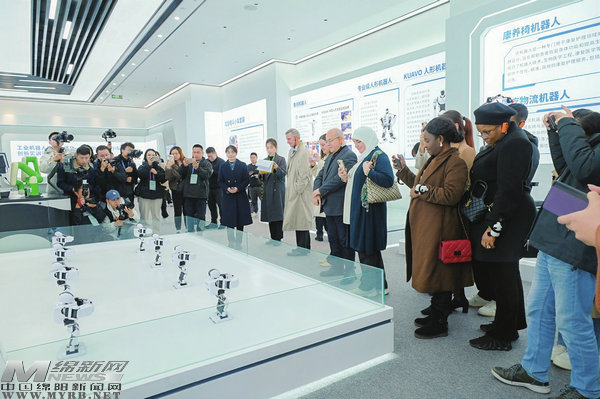 在科技城新區(qū)機(jī)器人創(chuàng)新館,運(yùn)用于多領(lǐng)域的機(jī)器人讓外賓們眼前一亮。