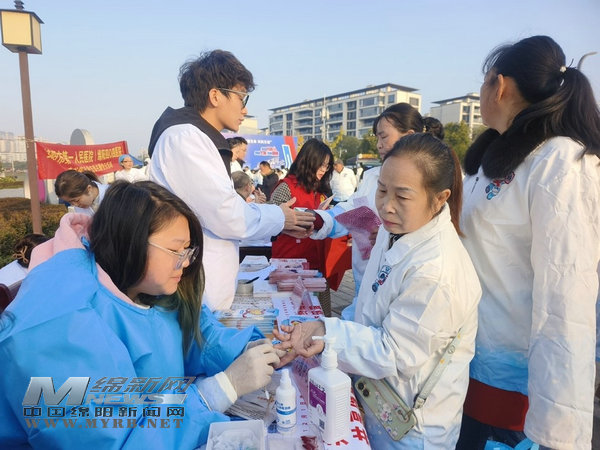 醫(yī)務(wù)人員為市民免費(fèi)檢查身體