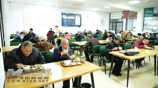 老人們?cè)?ldquo;涪光里”幸福餐廳就餐