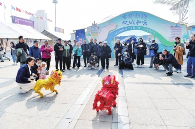 活動現(xiàn)場,身穿紅黃萌獅套裝的機器狗大方迎客,還時不時跟大家打招呼。如此聰明可愛的機器“團寵”,讓南京市民忍不住排隊跟它合影。“快,幫我合個影!”“我也要!”……