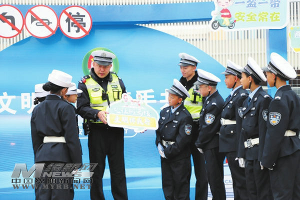 綿陽(yáng)新聞網(wǎng)訊 12月3日,綿陽(yáng)高新區(qū)火炬一小未來(lái)學(xué)院舉行交接儀式,該校六年級(jí)學(xué)生正式將小交警“接力棒”交到學(xué)弟學(xué)妹手上。