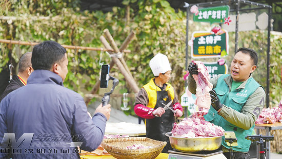 “這是糧食喂養(yǎng)的豬,肉質(zhì)緊實(shí)有嚼勁,營(yíng)養(yǎng)豐富、健康安全,感興趣的網(wǎng)友可直接下單……”日前,記者來(lái)到平武縣豆叩羌族鄉(xiāng)榮華村電商直播基地,看到“新農(nóng)人”建哥正在抖音平臺(tái)上向粉絲介紹新鮮豬肉,從到農(nóng)戶家收購(gòu)、到屠宰分割、再到肉質(zhì)展示……吸引了不少網(wǎng)友在線觀看,不到2個(gè)小時(shí)的直播,2500多公斤新鮮豬肉搶購(gòu)一空,銷售額近15萬(wàn)元。