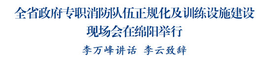 綿陽新聞網(wǎng)訊 12月11日,全省政府專職消防隊伍正規(guī)化及訓(xùn)練設(shè)施建設(shè)現(xiàn)場會在綿陽舉行。省消防救援總隊黨委書記、政治委員李萬峰出席會議并講話,市委副書記、市長李云出席會議并致辭。