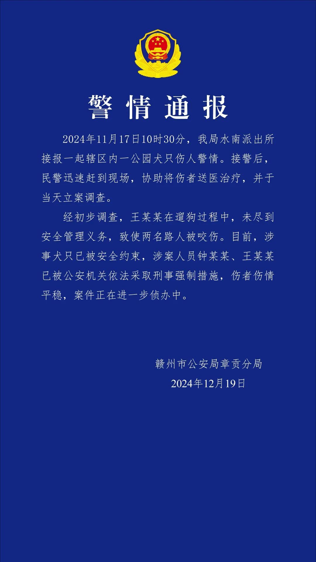 母女公園散步遭四條大型犬撕咬,贛州警方通報