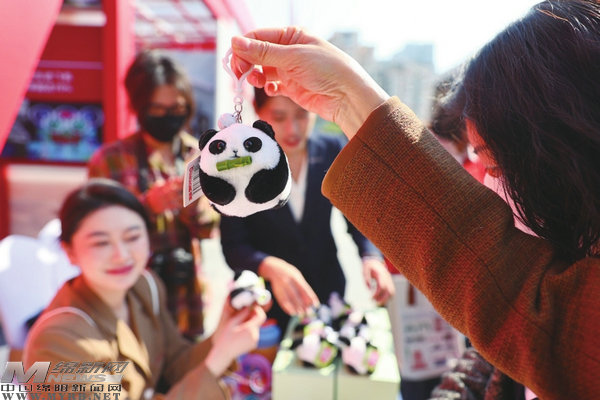 12月20日,活動(dòng)展場(chǎng)內(nèi)展出的熊貓文創(chuàng)產(chǎn)品受到深圳市民喜愛。