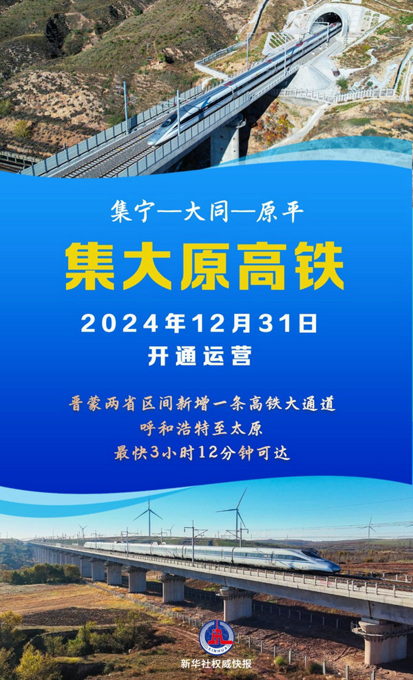 新華社呼和浩特12月31日電(記者朱文哲、許雄)連通內(nèi)蒙古自治區(qū)和山西省的集寧經(jīng)大同至原平高鐵31日開通運營,烏蘭察布至大同南站最快40分鐘可達,呼和浩特東至太原南站最快3小時12分鐘可達,晉蒙兩省區(qū)間新增一條高鐵大通道。