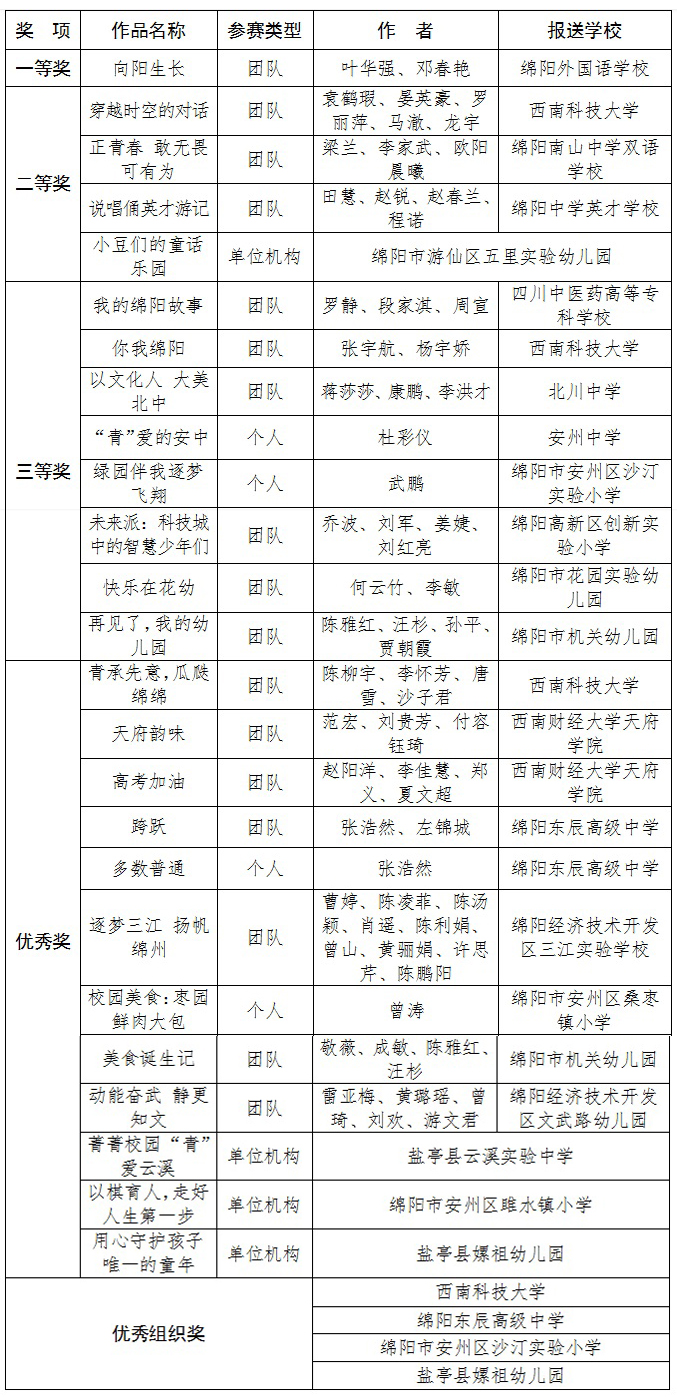 由中共綿陽市委宣傳部、中共綿陽市委網(wǎng)信辦、綿陽市教育和體育局、共青團(tuán)綿陽市委聯(lián)合主辦的“‘青’愛的綿陽”短視頻大賽第一季以“我的校園我來拍”為主題,邀請在綿高校學(xué)生,大中小學(xué)及幼兒園教師個人、團(tuán)隊或單位機構(gòu)以特有的藝術(shù)形式和視角記錄美好生活、展示城市活力。