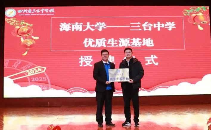 2月3日,海南大學(xué)熱帶農(nóng)林學(xué)院(農(nóng)業(yè)農(nóng)村學(xué)院、鄉(xiāng)村振興學(xué)院)黨委書記于旭東一行蒞臨三臺(tái)中學(xué),為三臺(tái)中學(xué)授牌“優(yōu)質(zhì)生源基地”。授牌儀式在學(xué)該校文峰學(xué)術(shù)廳隆重舉行??h委教育工委常務(wù)副書記、教體局黨組書記、局長蒲睿出席了授牌儀式。