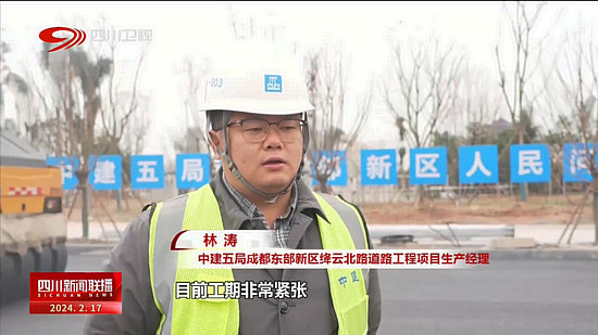 中建五局成都東部新區(qū)絳云北路道路工程項目生產(chǎn)經(jīng)理 林濤:目前工期非常緊張,我和部分同事可能就沒辦法回家過年,但是考慮到能為東部新區(qū)的建設(shè)以及世園會的保障工作做出自己的一份貢獻,我們覺得還是非常自豪。