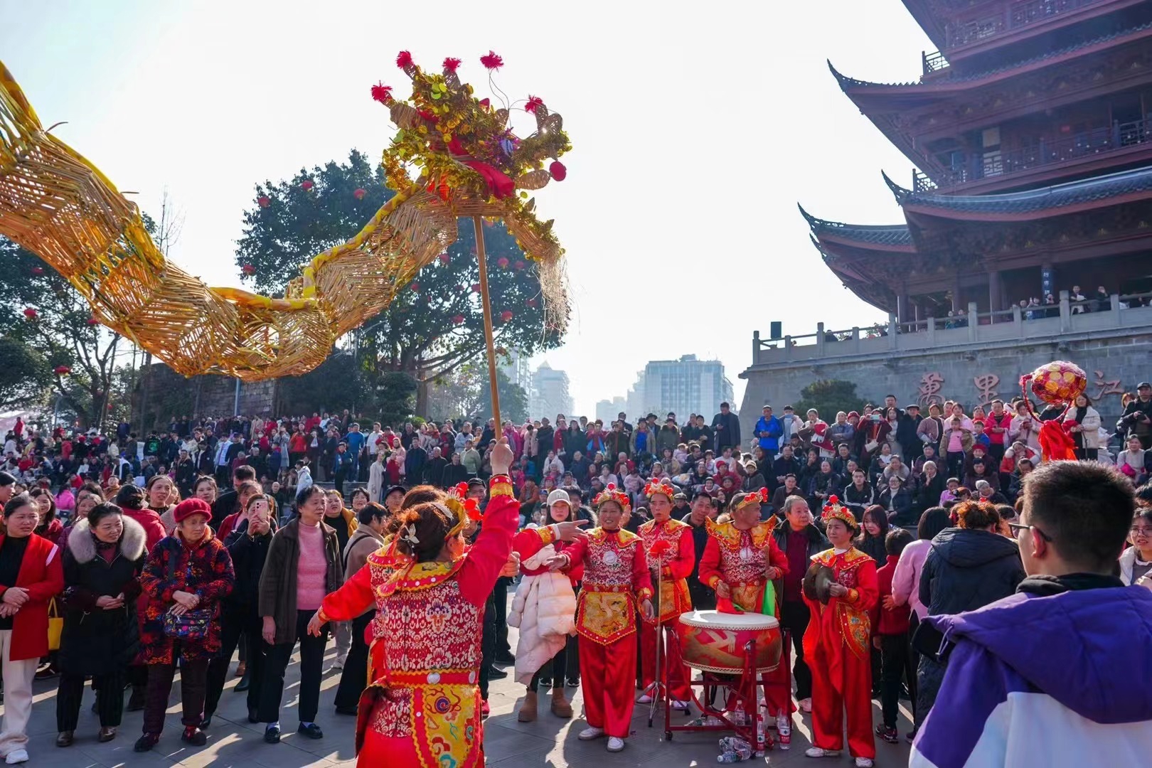 宜賓翠屏區(qū)合江門民俗活動人氣旺。(越良斌攝)