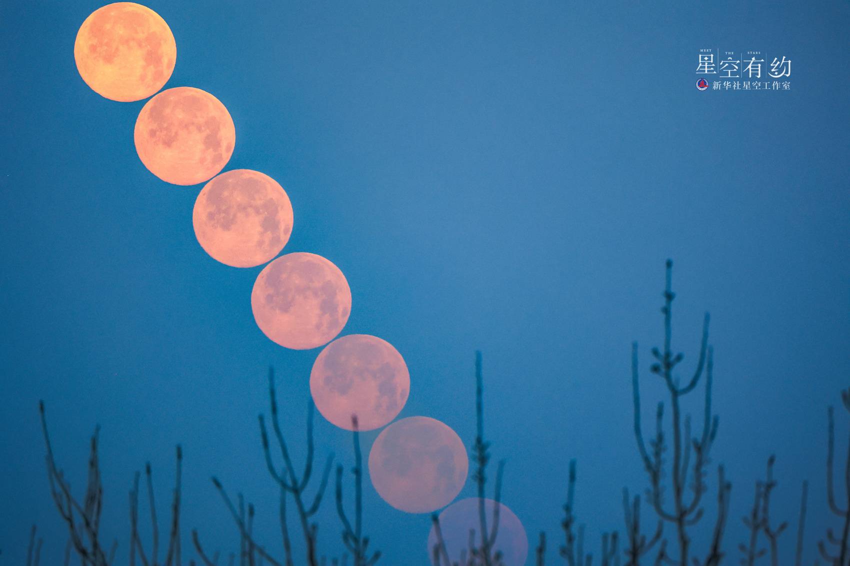 2023年2月5日,元宵節(jié),“十五的月亮十六圓”。這是北京市星空攝影愛好者王俊峰2月6日在北京豐臺區(qū)拍攝的“月落過程”(多張疊加)。(本人供圖)