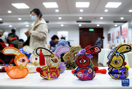 3月6日在巾幗園的非遺好物市集上拍攝的手工兔子燈。
