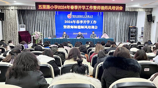 綿陽(yáng)新聞網(wǎng)訊 春風(fēng)來(lái)掃千山雪,歸留萬(wàn)國(guó)便繁華。2月23日上午,游仙區(qū)五里路小學(xué)組織召開(kāi)了2024年春季學(xué)期開(kāi)學(xué)工作暨教師師德師風(fēng)培訓(xùn)會(huì),就新學(xué)期學(xué)校工作目標(biāo)和各部門籌備工作作出了具體部署和安排。校長(zhǎng)任天成主持會(huì)議并講話,全體教職工參加會(huì)議。