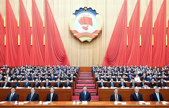 3月10日上午,中國人民政治協(xié)商會議第十四屆全國委員會第二次會議在北京人民大會堂閉幕。這是習近平、李強、趙樂際、蔡奇、丁薛祥、李希、韓正在主席臺就座。?。ㄐ氯A社記者 黃敬文 攝)??