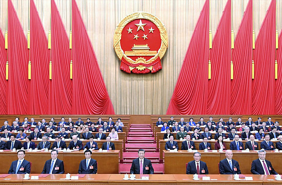 習(xí)近平、李強(qiáng)、王滬寧、蔡奇、丁薛祥、李希、韓正和大會主席團(tuán)成員在主席臺就座。