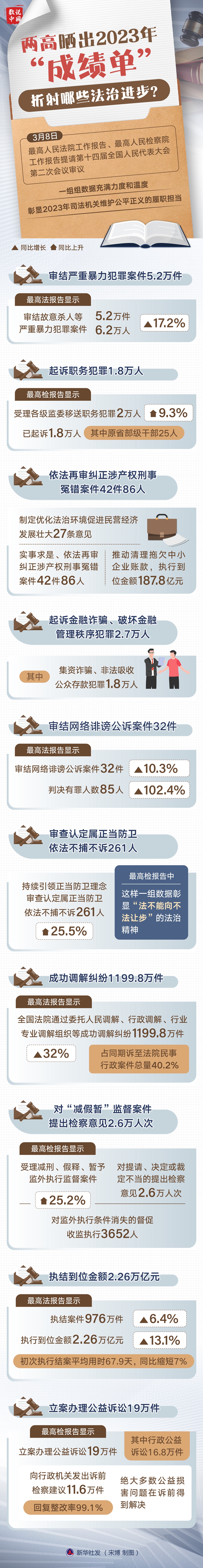 新華社北京3月8日電 題:兩高曬出2023年“成績(jī)單”,折射哪些法治進(jìn)步?