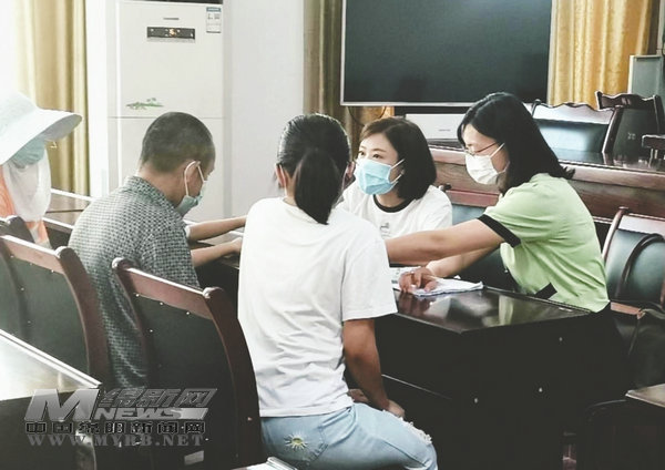 涪城區(qū)教體局工作人員正在為學(xué)生家長(zhǎng)講解“潤(rùn)禾”助學(xué)行動(dòng)相關(guān)政策