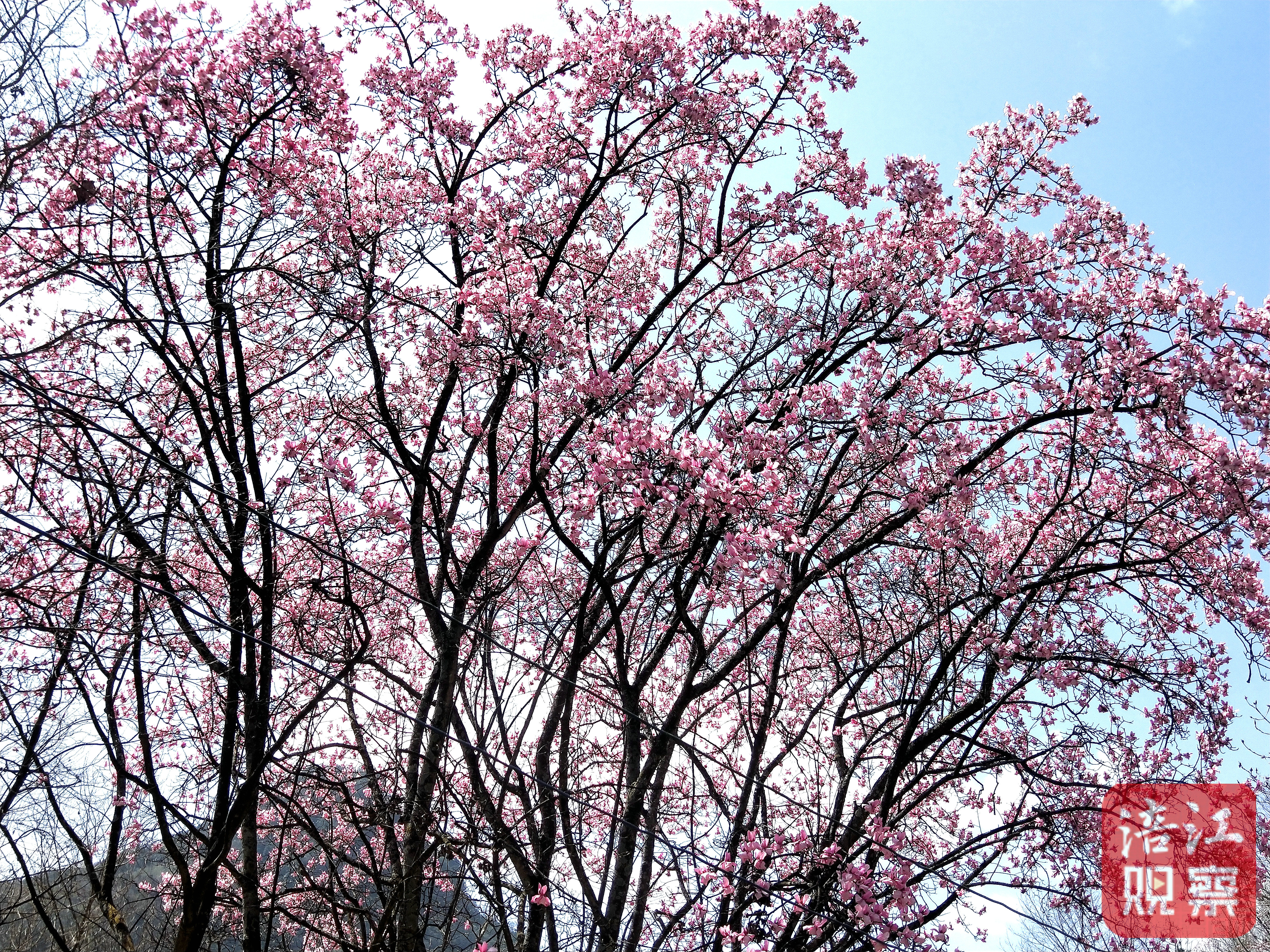 在江油市楓順鄉(xiāng)小院村,數(shù)千株大小不等的辛夷花樹(shù)競(jìng)相綻放,花香四溢,春意盎然。微風(fēng)拂過(guò),辛夷花在空中微微搖曳,如同一大片粉色的花海,引得眾多游客前來(lái)觀賞。