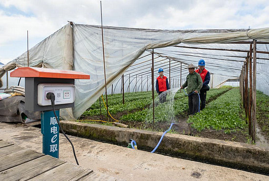 3月26日,在福建省南平市順昌縣元坑鎮(zhèn)秀水村,農(nóng)戶在使用共享電源灌溉。(鄧毅 攝)