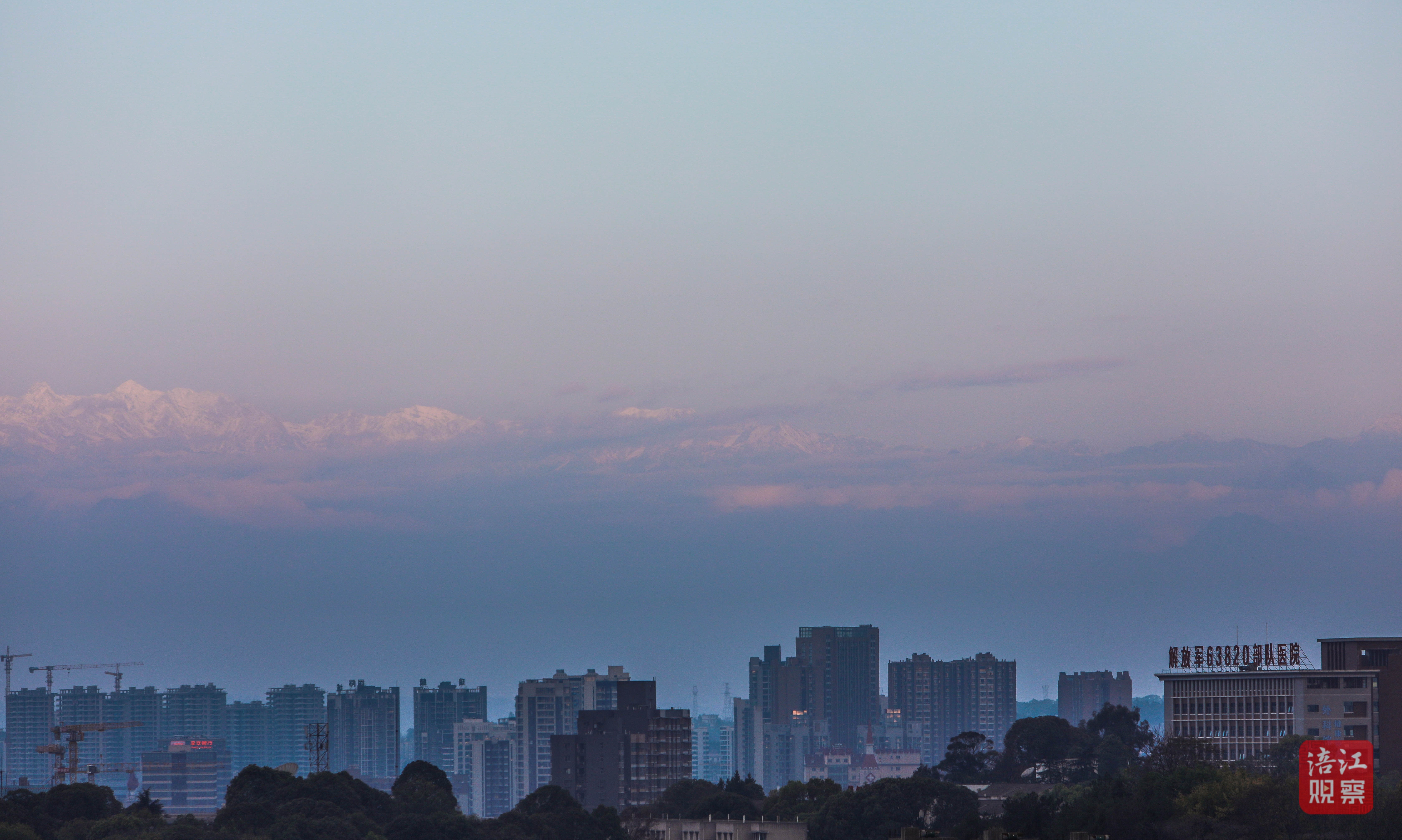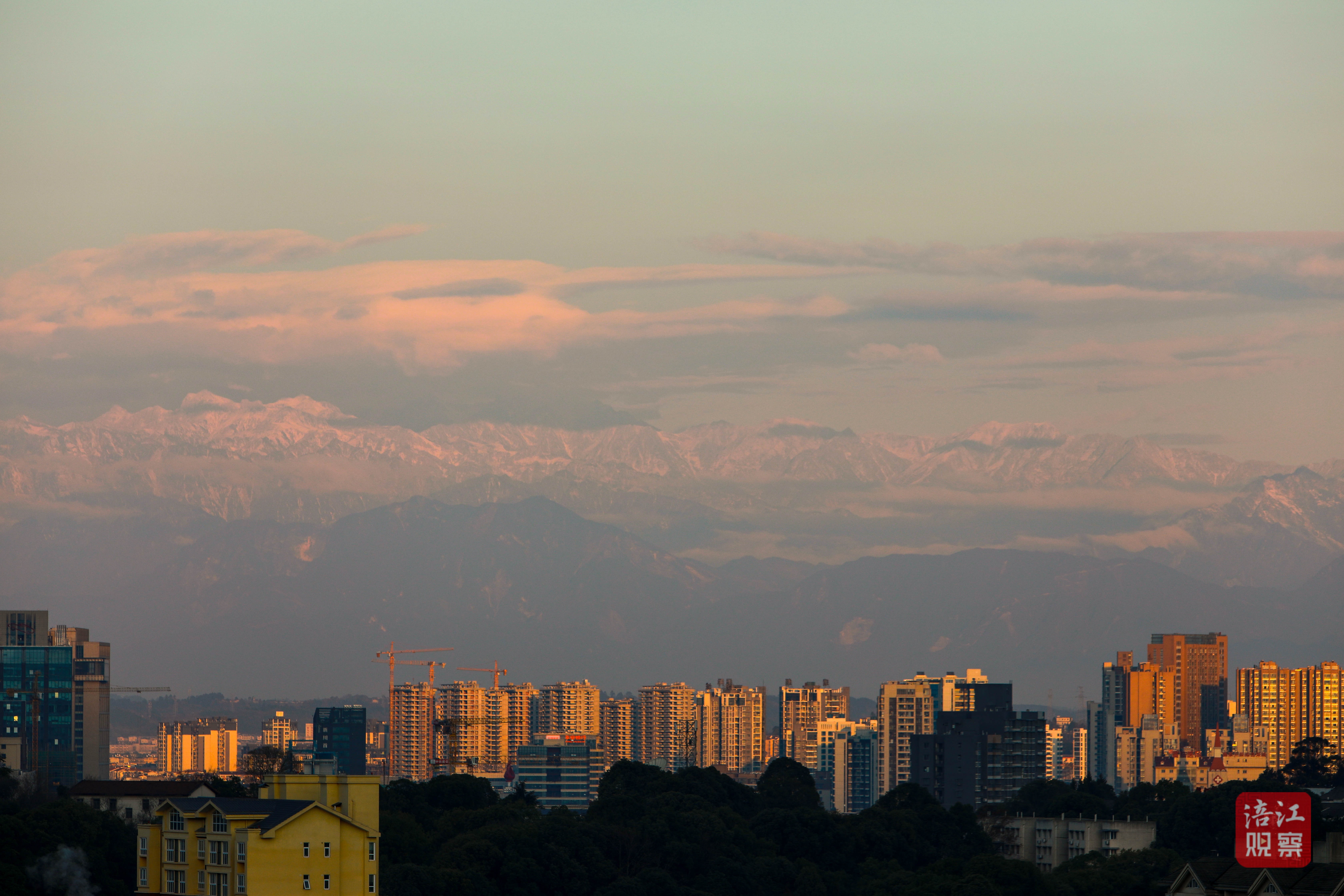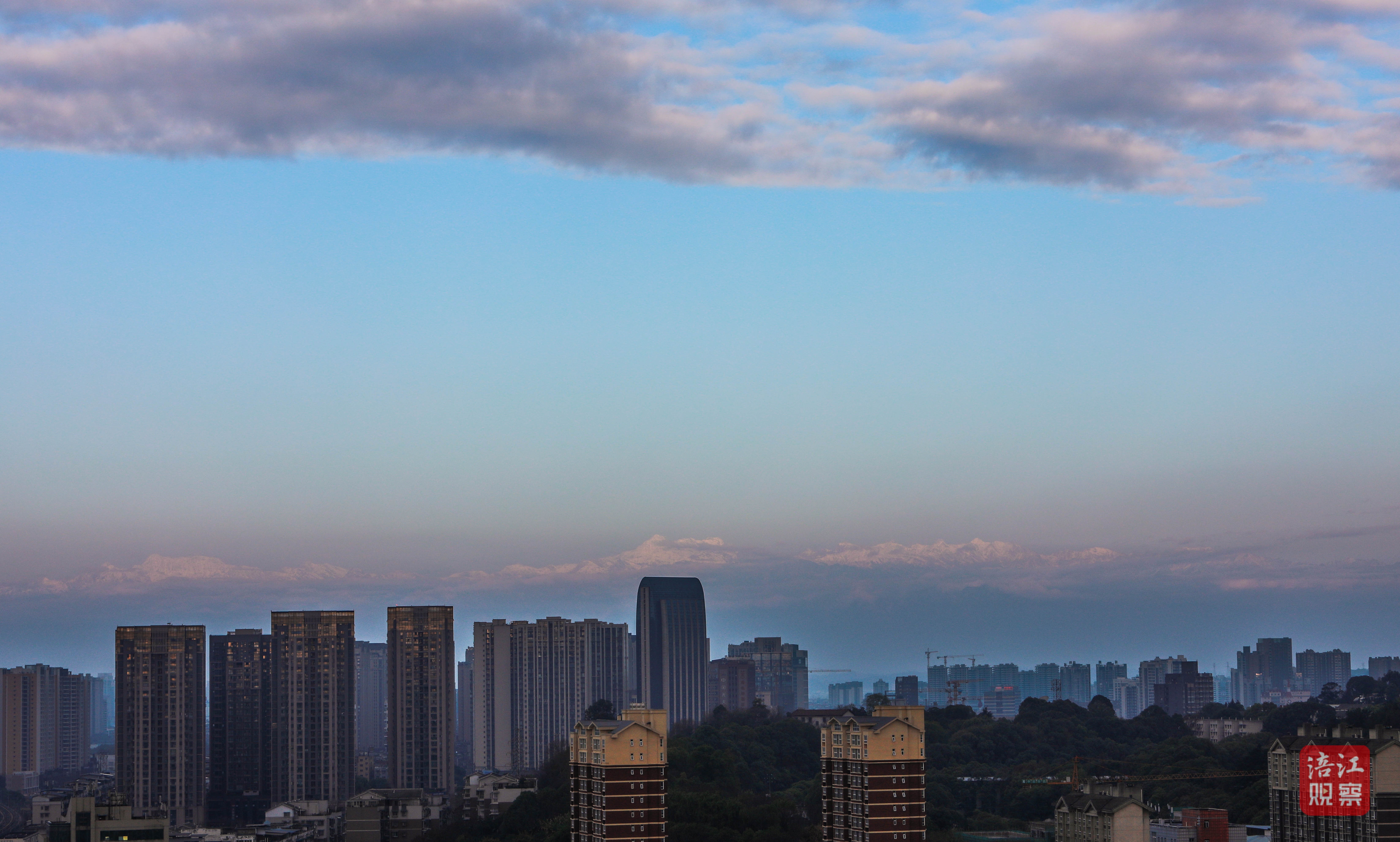 清晨,超高的能見度,讓綿陽人有機(jī)會(huì)一睹“窗含西嶺千秋雪”的壯麗風(fēng)光。
