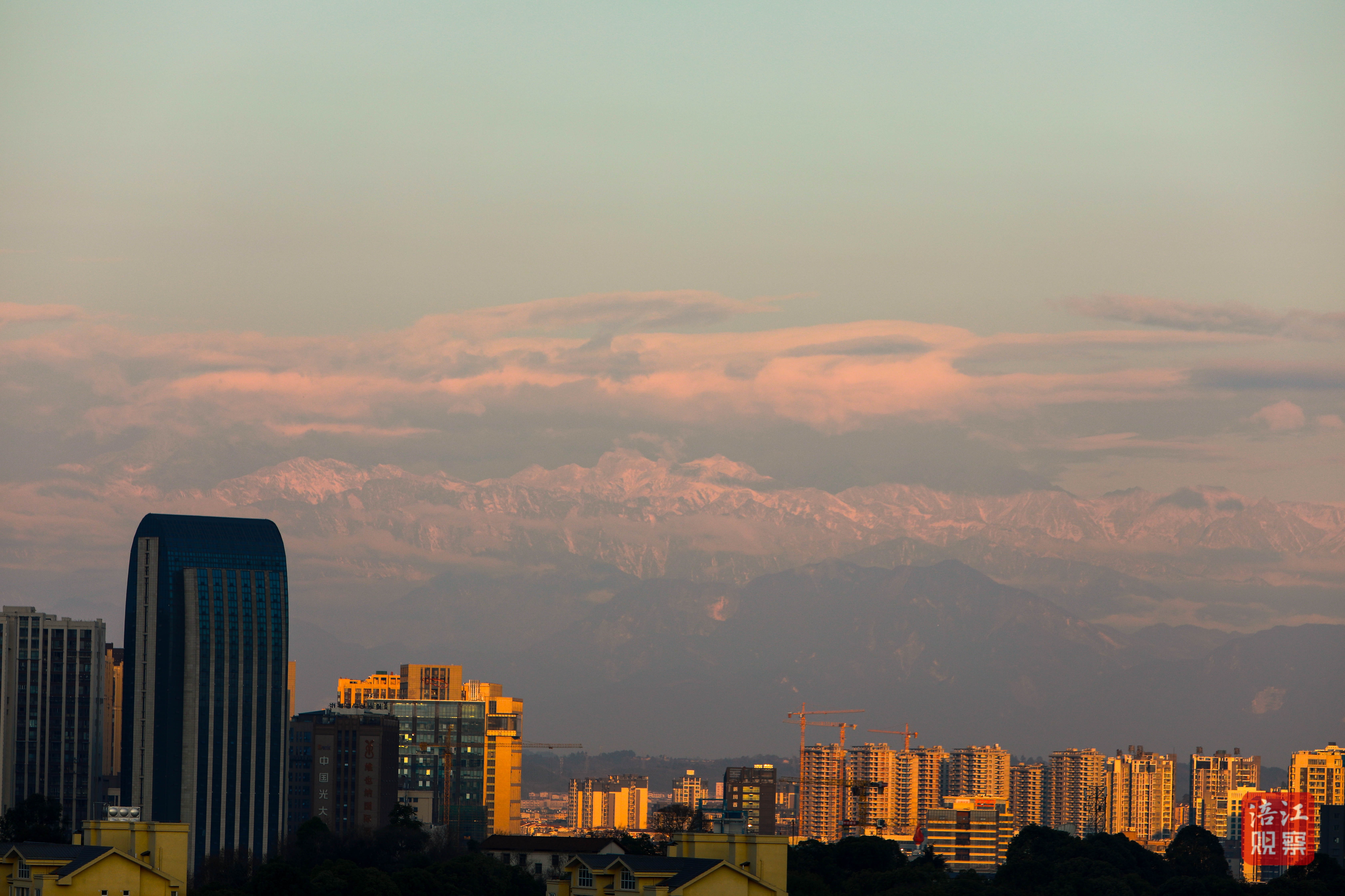雪山與城市相互映襯,構(gòu)成了一幅美麗的畫卷。