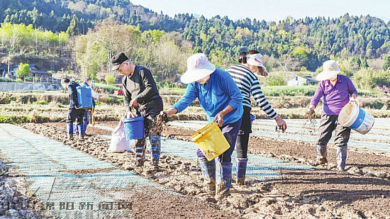 在石河堰村,空氣夾雜著新鮮的泥土氣息撲面而來,村民們正在培育旱秧苗,他們嫻熟地播撒下稻種,澆水、覆膜,有條不紊地進行每一道工序,全力以赴為即將到來的水稻插秧提供優(yōu)質(zhì)秧苗。