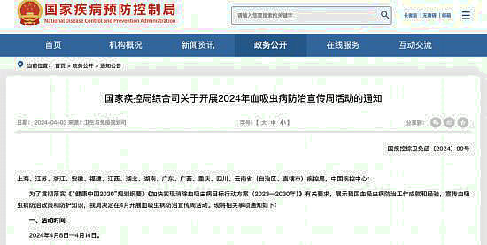 《“健康中國(guó)2030”規(guī)劃綱要》提出“到2030年全國(guó)所有流行縣達(dá)到消除血吸蟲病標(biāo)準(zhǔn)”。國(guó)家疾控局發(fā)布的關(guān)于開展2024年血吸蟲病防治宣傳周活動(dòng)的通知明確,要加大重點(diǎn)地區(qū)、重點(diǎn)人群的宣傳力度,提高公眾對(duì)血防知識(shí)的認(rèn)知和防護(hù)意識(shí),共同落實(shí)綜合防治措施。