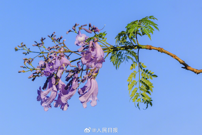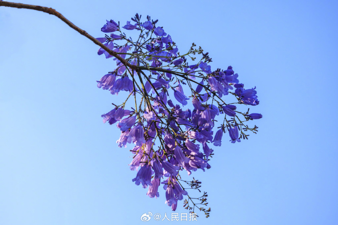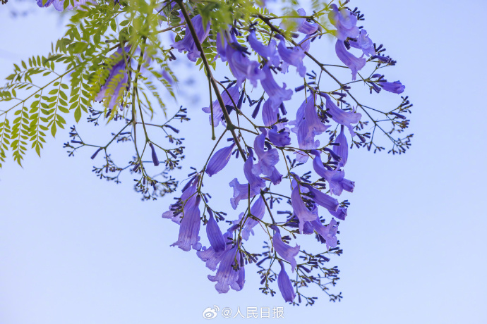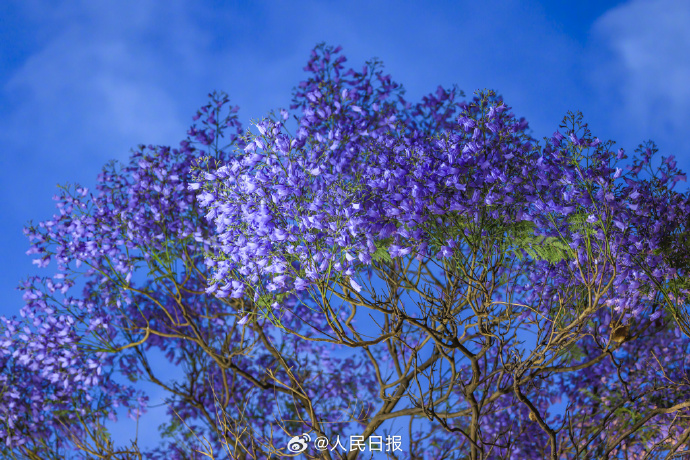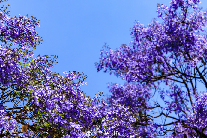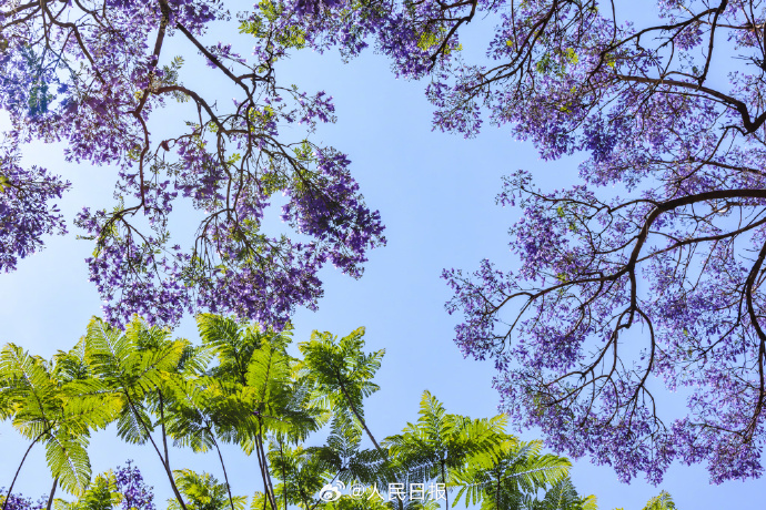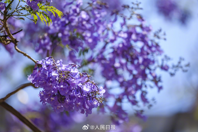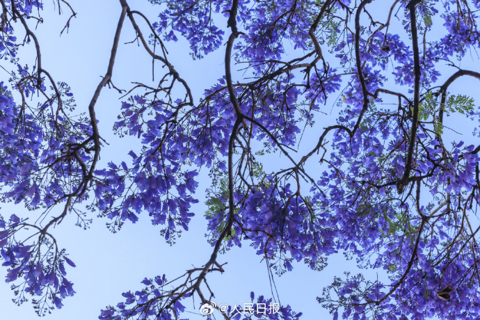 近日,云南昆明教場中路的藍(lán)花楹開放,城市籠罩在紫色花海中,夢幻十足。