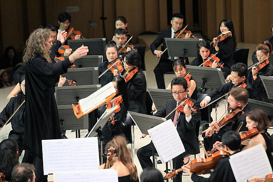 4月17日,在位于成都市的“中國(guó)—歐洲中心”云端天府音樂廳,法國(guó)凡爾賽宮皇家歌劇院管弦樂團(tuán)和成都交響樂團(tuán)在演奏。新華社發(fā)(成都市人民政府外事辦公室供圖)