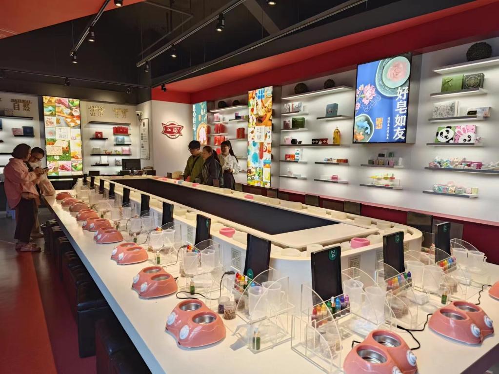 4月21日,游客在唐閘歷史文化街區(qū)體驗手工制皂。新華社記者 柯高陽 攝