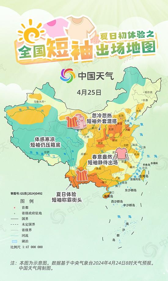 4月25日至27日,我國大部地區(qū)開啟升溫模式,尤其是北方晴空當(dāng)?shù)溃A北、黃淮等地將迎大范圍“30℃+”,仿佛一鍵穿越至夏天。氣溫升升升,你的夏裝準(zhǔn)備好了嗎?全國短袖出場地圖,看哪些地方已經(jīng)需要夏裝出街,哪些地方還需春裝護(hù)體。