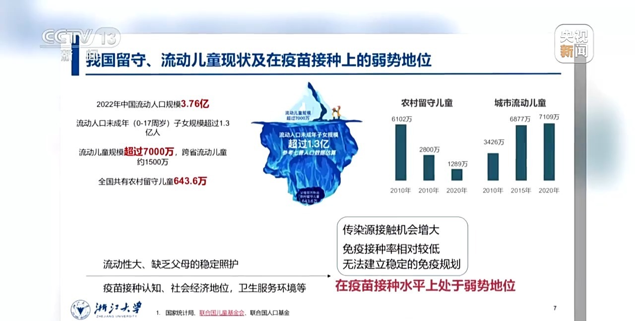 浙江大學(xué)公共衛(wèi)生學(xué)院“百人計(jì)劃”研究員 徐小林:農(nóng)村留守兒童選取的是我國(guó)中部的河南,它是一個(gè)人口流出的代表省份。城市地區(qū)選擇的是浙江省,它是一個(gè)人口流入的代表性省份。我們發(fā)現(xiàn)這四類兒童的疫苗認(rèn)知情況,是呈現(xiàn)下降的趨勢(shì),比方說(shuō)留守兒童和流動(dòng)兒童,他們的接種率雖然超過(guò)了90%,但是很多疫苗接種是有延遲的。這里面我們有一個(gè)衡量指標(biāo)叫作及時(shí)接種率,相對(duì)就要低一些,這也是“疫苗猶豫”的一個(gè)體現(xiàn)。
