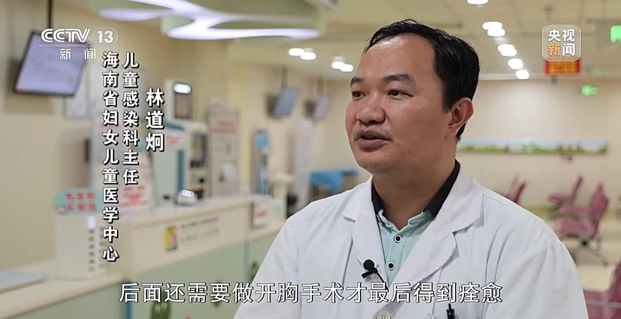 海南省婦女兒童醫(yī)學(xué)中心兒童感染科主任 林道炯:肺炎鏈球菌它不僅可以引起兒童肺炎,還出現(xiàn)腦膜炎、敗血癥等并發(fā)癥。這些疾病往往比較危重,有時(shí)候會(huì)造成孩子不幸身亡,即使能夠救活,有時(shí)候也會(huì)留下一些智力低下、癱瘓、聽(tīng)力下降等后遺癥。最近我們就接診過(guò)兩個(gè)孩子,后面還需要做開(kāi)胸手術(shù)才最后得到痊愈。