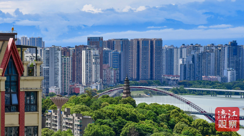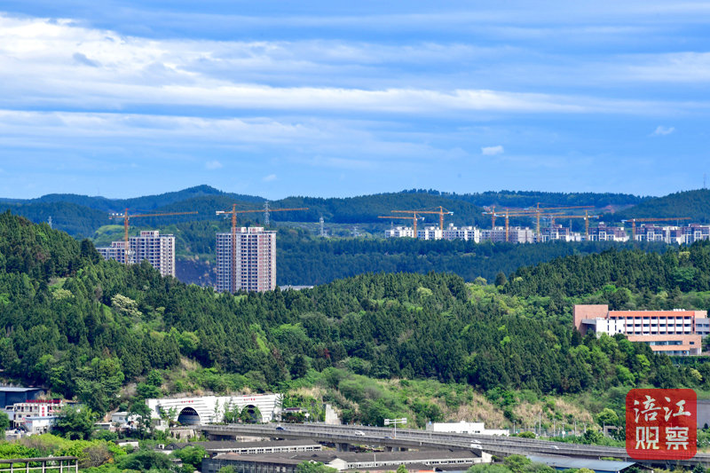 站在經(jīng)開(kāi)區(qū)高樓上向城區(qū)方向眺望,只見(jiàn)三江兩岸高樓林立,樹(shù)木蔥郁、湖水碧綠,遠(yuǎn)處的龍門山脈輪廓清晰可見(jiàn),美不勝收!