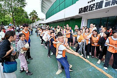 上午8時許,綿陽南河體育中心的體育場內響起陣陣加油聲,來自石塘街道紅星社區(qū)的群眾,正在進行定點投籃、50米接力跑、拔河等競爭類的比賽。
