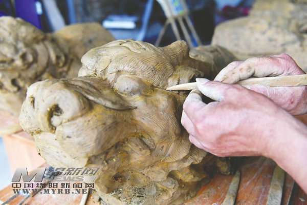 在泥坯工作車間,已初具雛形的八座龍頭泥坯呈現(xiàn)眼前。“這座泥坯是第一條龍睚眥的頭,傳說中是龍與狼所生之子。在重塑泥坯過程中,著重要突出其狼嘴、龍頭、龍腳的特征。與其他龍不同,它的耳朵是喇叭形狀……”經(jīng)過前期多次現(xiàn)場反復測量,查閱資料后再詳細比對,陳曉順對即將修復的每條龍的神形特征已了然于胸。他指著每座龍頭泥坯娓娓道來,猶如展開了一本龍的傳說故事。