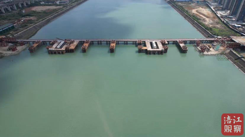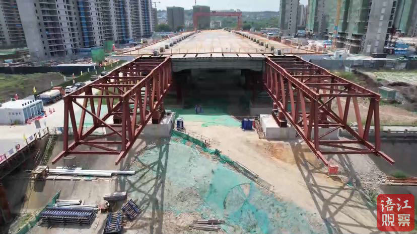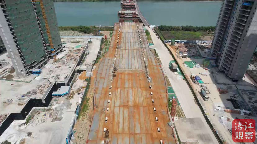 記者看到,在涪城區(qū)青義鎮(zhèn)青龍大道靠近涪江位置,大型跨河頂推鋼架已經(jīng)架設(shè)起來,頂推各項(xiàng)監(jiān)控設(shè)施已經(jīng)搭建。青石路涪江大橋項(xiàng)目負(fù)責(zé)人介紹,該橋?yàn)榱汗敖M合形式的鋼結(jié)構(gòu)橋,頂推施工采用不帶拱兩側(cè)非對(duì)稱頂推工藝,兩側(cè)頂推施工同步進(jìn)行。其中,涪城側(cè)鋼箱梁主梁長(zhǎng)度255米,頂推距離316米,游仙側(cè)鋼箱梁主梁長(zhǎng)度125米,頂推距離177米??缃斖凭嚯x達(dá)493米,頂推時(shí)間預(yù)計(jì)將在夏季完成。