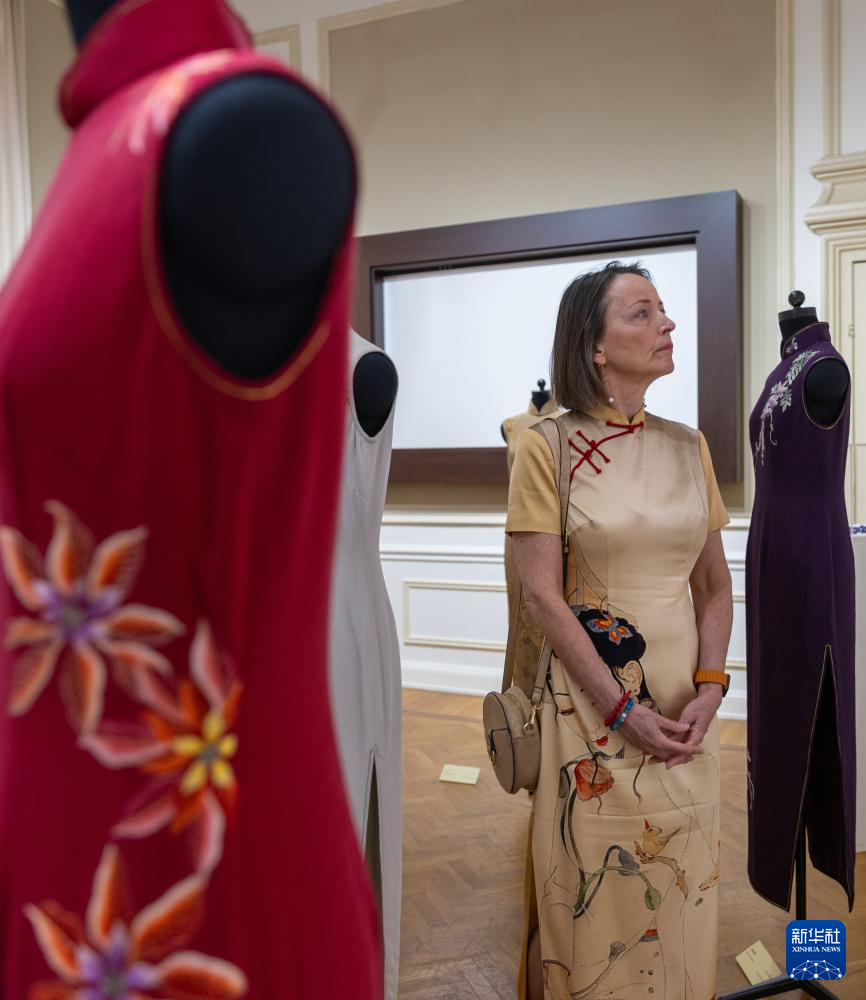來自羅馬尼亞的伊萬娜·斯克埃什泰亞努在參觀展覽后表示:“我之前對20世紀(jì)初期的上海風(fēng)貌和歷史不太了解,這次旗袍展讓我有機會近距離欣賞旗袍之美,更深入地了解上海。這些旗袍非常精美,將傳統(tǒng)與現(xiàn)代結(jié)合在一起,能看到制作者一針一線中的巧思。這是一次中歐之間的文化交流,能讓歐洲人看到中國文化的不同方面。”