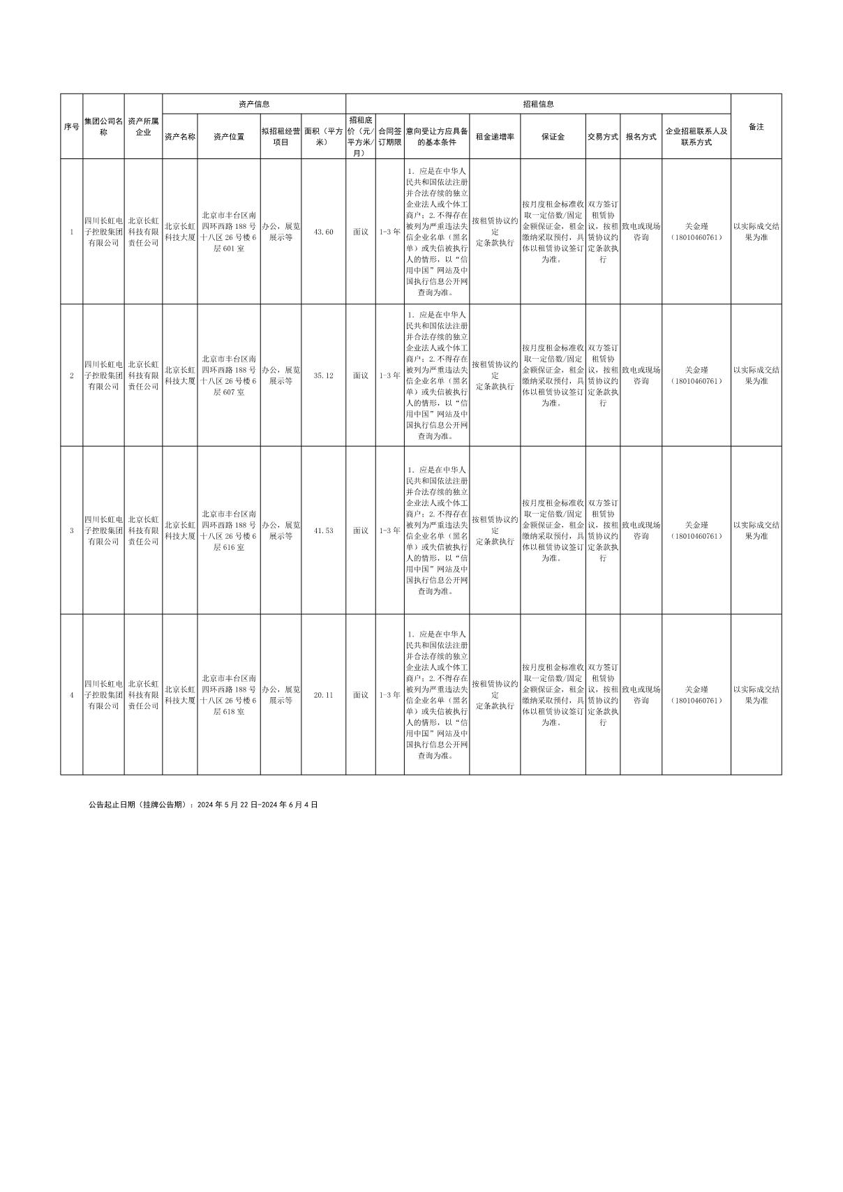北京長虹科技有限責任公司資產(chǎn)出租公告