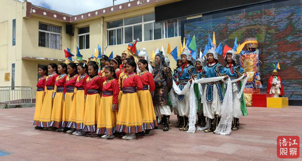 走進(jìn)紅原邛溪易地育人學(xué)校,校園里正在進(jìn)行具有地方特色的文藝演出,從彈唱《阿克班瑪》到情景表演《格薩爾王賽馬成王》等,濃郁的民族文化特色與民俗風(fēng)情引得游客紛紛拿出手機拍攝。在活動中,四川幼兒師范高等??茖W(xué)校藝術(shù)學(xué)院舞蹈教育專業(yè)的幾位學(xué)生,也登臺來了一段舞蹈表演,贏得學(xué)校師生的點贊。