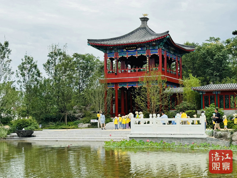 在講解員的帶領(lǐng)下,媒體團(tuán)一行自1號(hào)門進(jìn)入園區(qū),門口憨態(tài)可掬的世園會(huì)吉祥物“桐妹兒”正在與大家打招呼。“桐妹兒形象以‘三星堆青銅鳥’和‘中國(guó)鴿子樹(shù)’珙桐為創(chuàng)意核心,蘊(yùn)含了生態(tài)文明、古蜀文化和國(guó)際主義三大核心設(shè)計(jì)理念,體現(xiàn)出人們對(duì)和平、友好、平等、自由等共同價(jià)值觀的追求,也寄托各國(guó)人民世代友好往來(lái)的美好愿景。”隨后,講解員帶領(lǐng)大家從北京展園開(kāi)始了本次游覽。