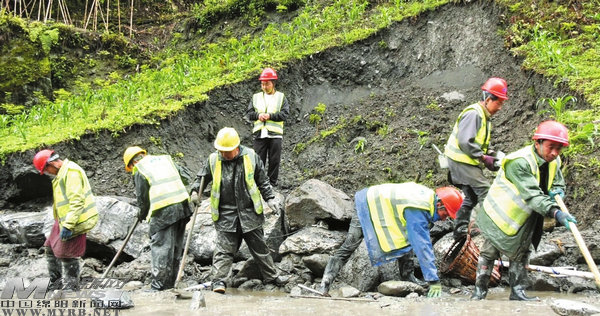 “由我們公司承建的平武縣虎牙河虎牙藏族鄉(xiāng)防洪治理工程項(xiàng)目全長1280米,4月5日開始施工,前期投入了10臺挖機(jī)、10臺裝載機(jī)、10臺自卸車、150名工人,到目前為止,完成了整個河堤主體工程的1000米,主體結(jié)構(gòu)爭取盡快完成。”平武興達(dá)建設(shè)有限責(zé)任公司副總經(jīng)理李德智告訴記者。